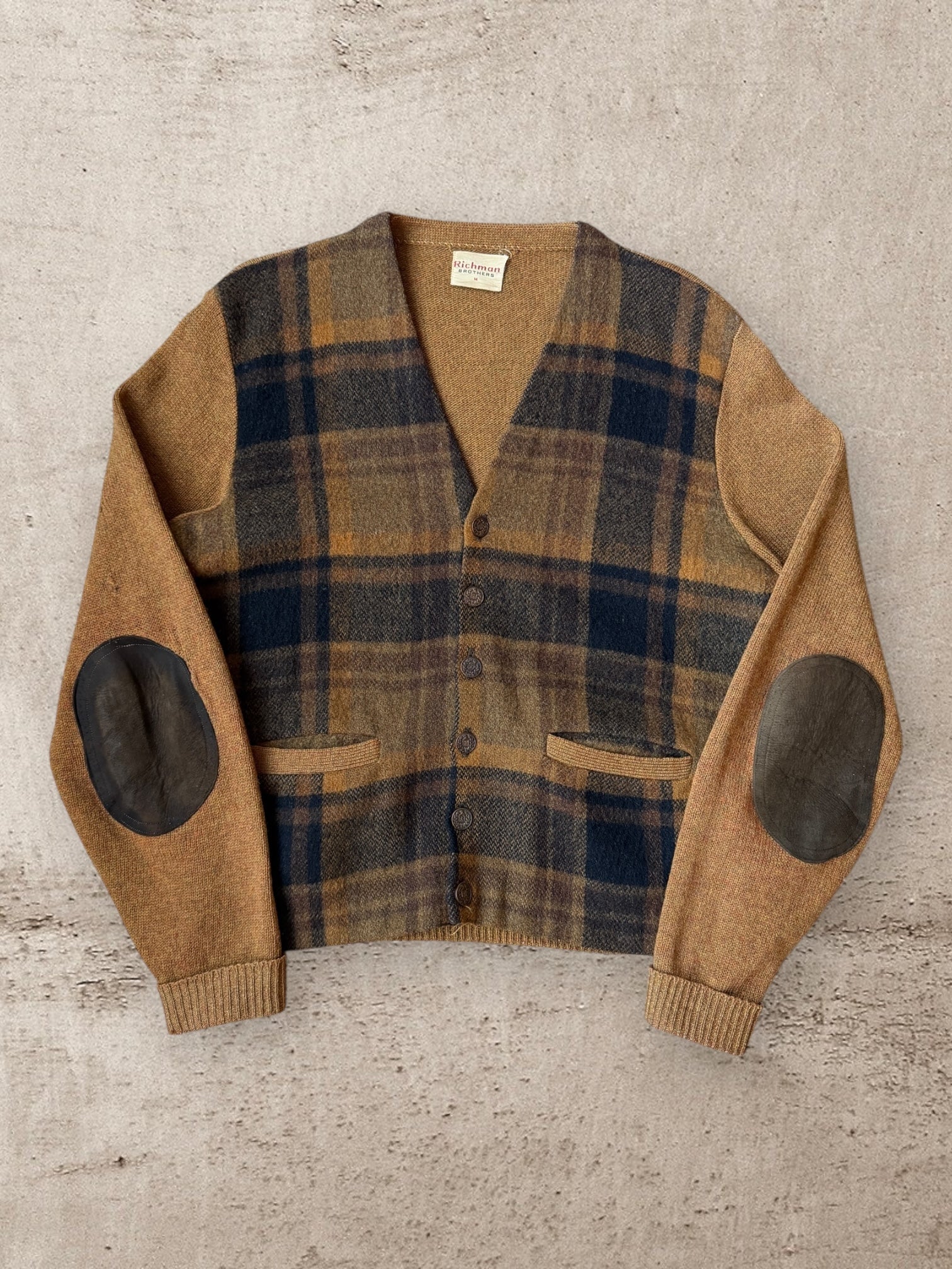 60s/70s Richman Brothers Plaid Wool Cardigan - Medium