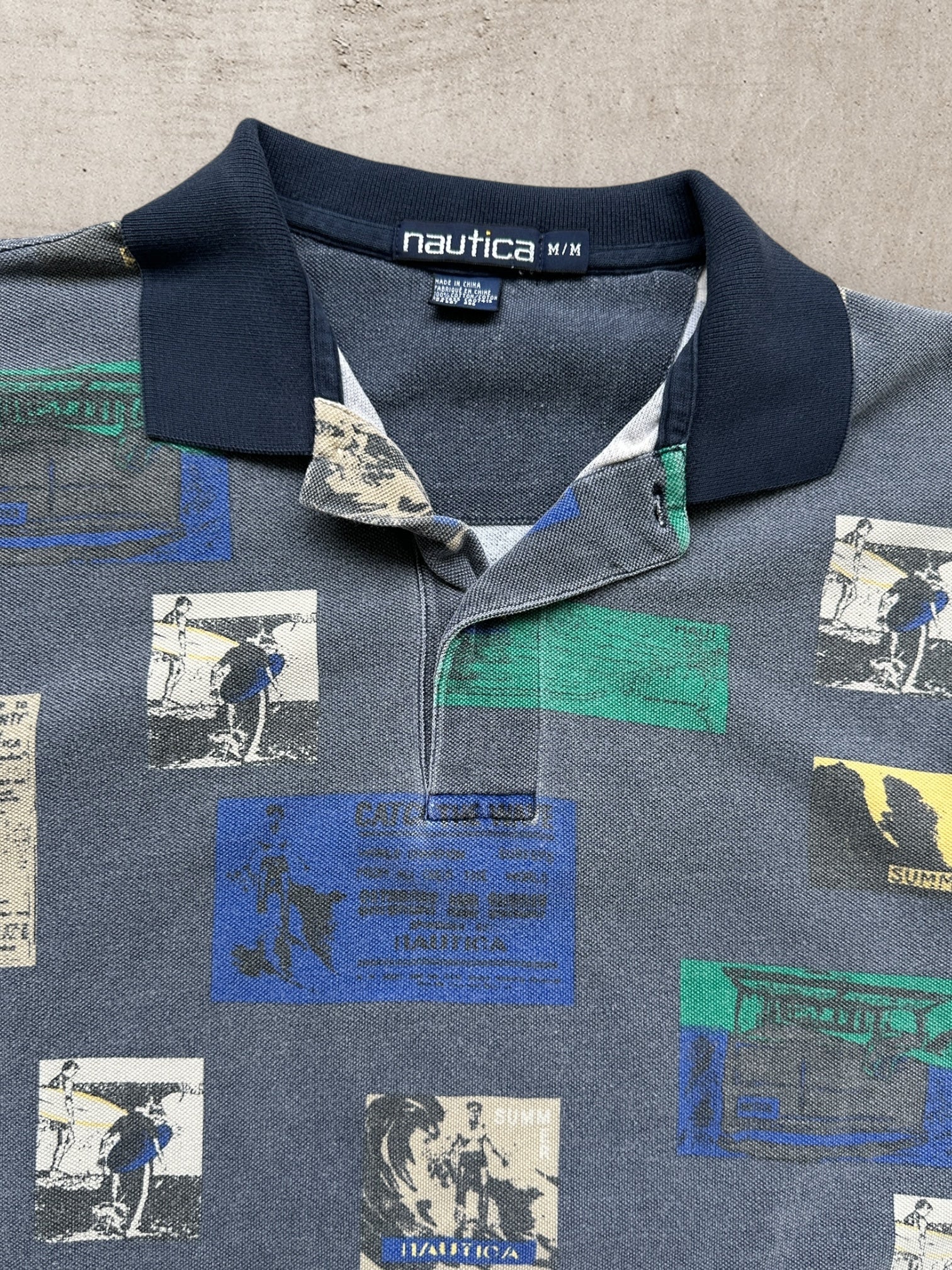 00s Nautica Graphic Polo Shirt - Large