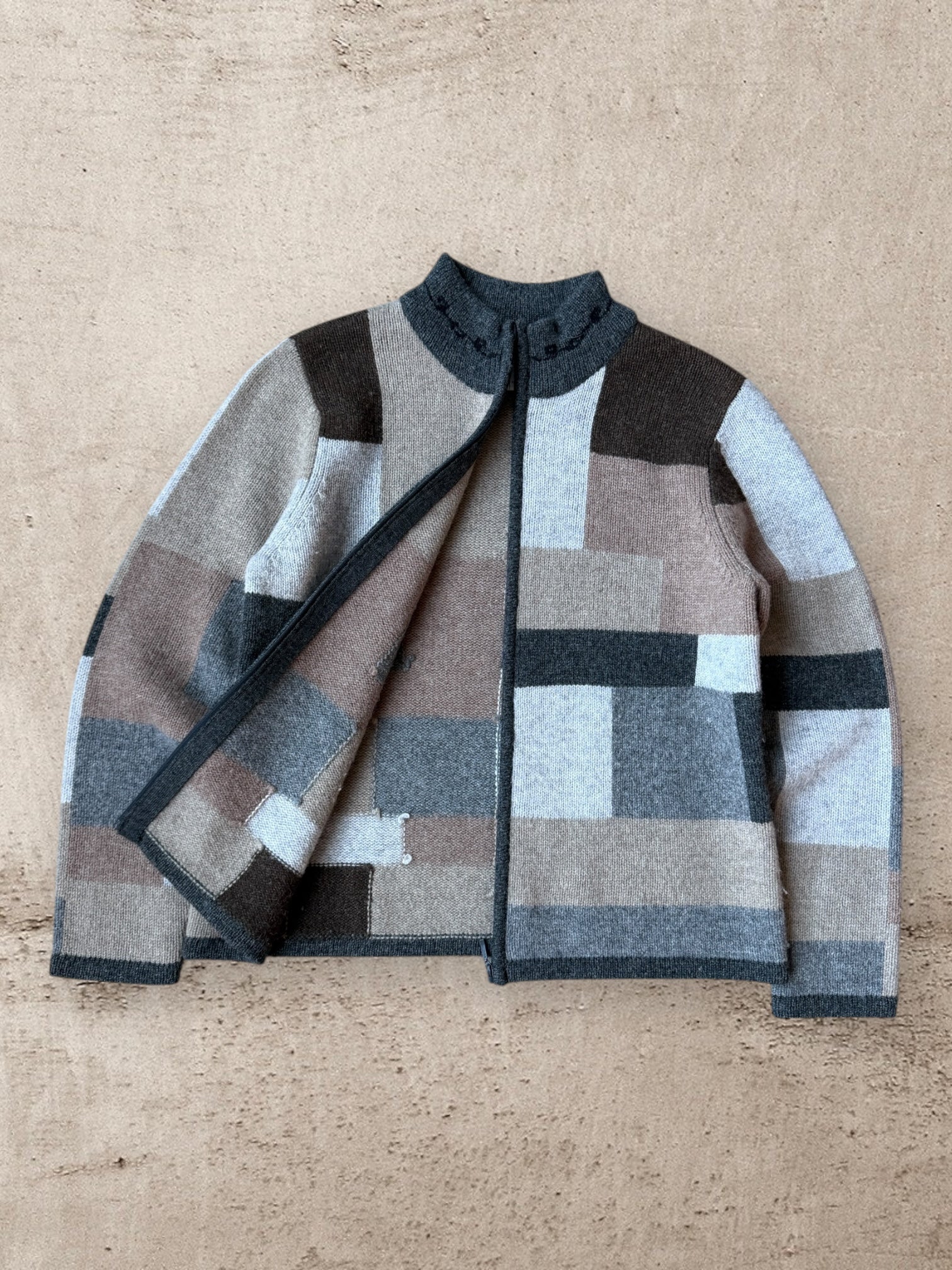 00s Talbot Multicolor Geometric Zip Up Knit Sweater - Medium