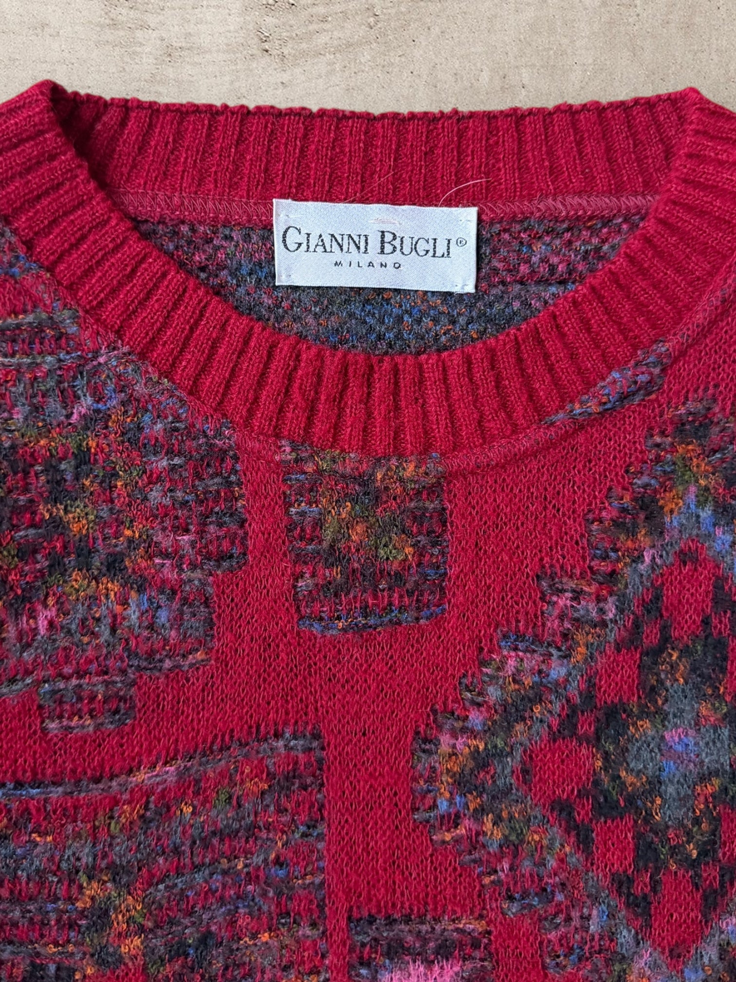 90s Gianni Bugli Geometric Knit Sweater - Large