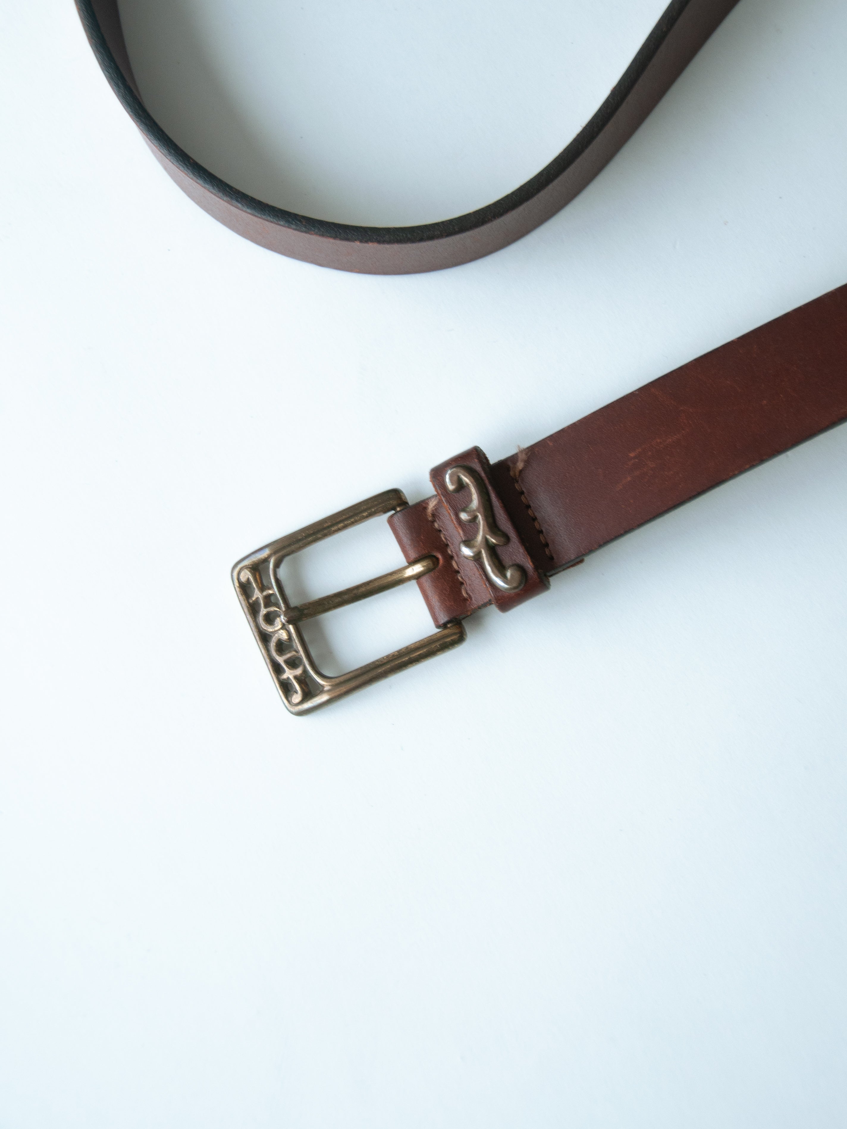 • 00s Brown & Brass Leather Belt - 31”