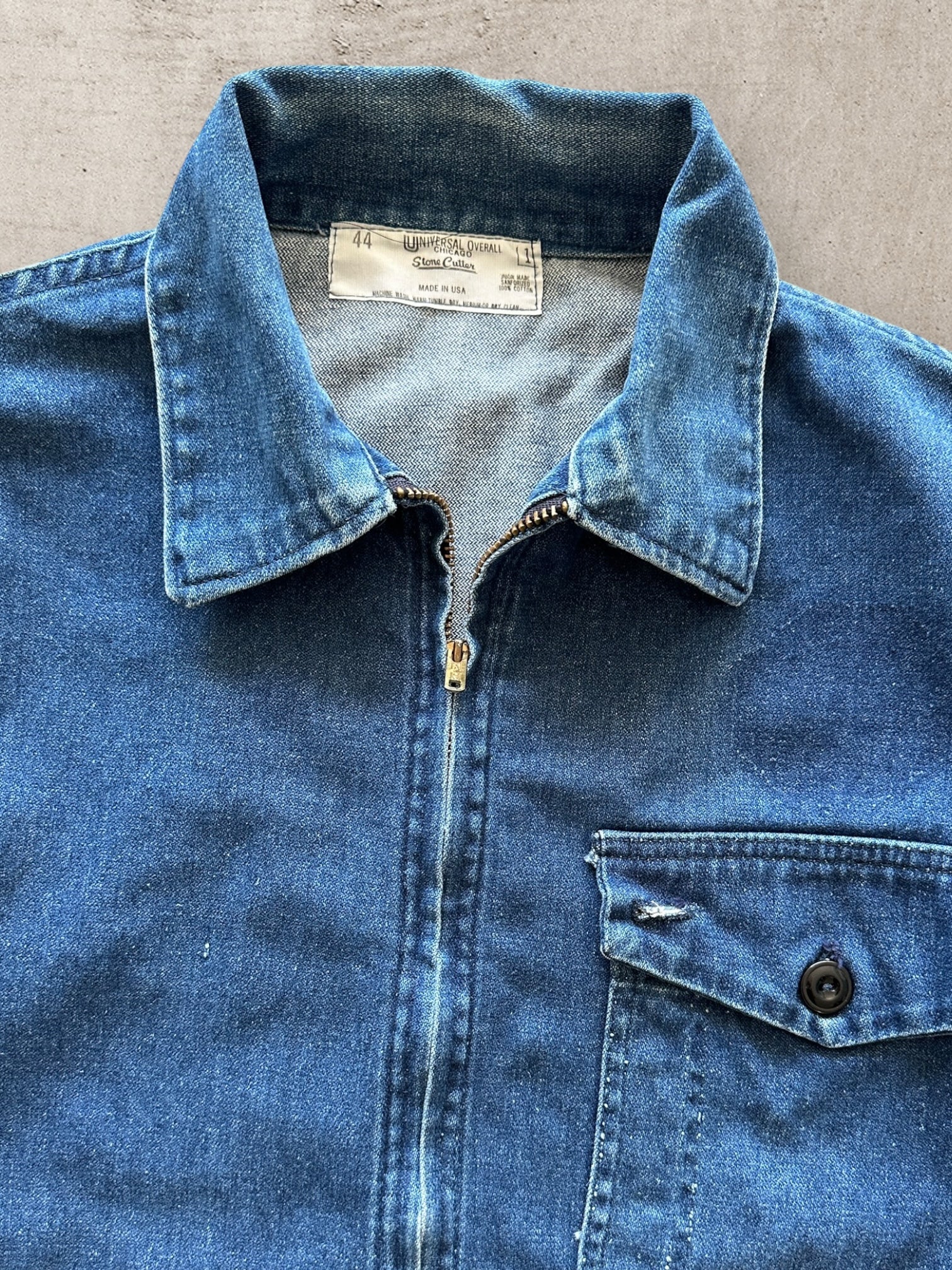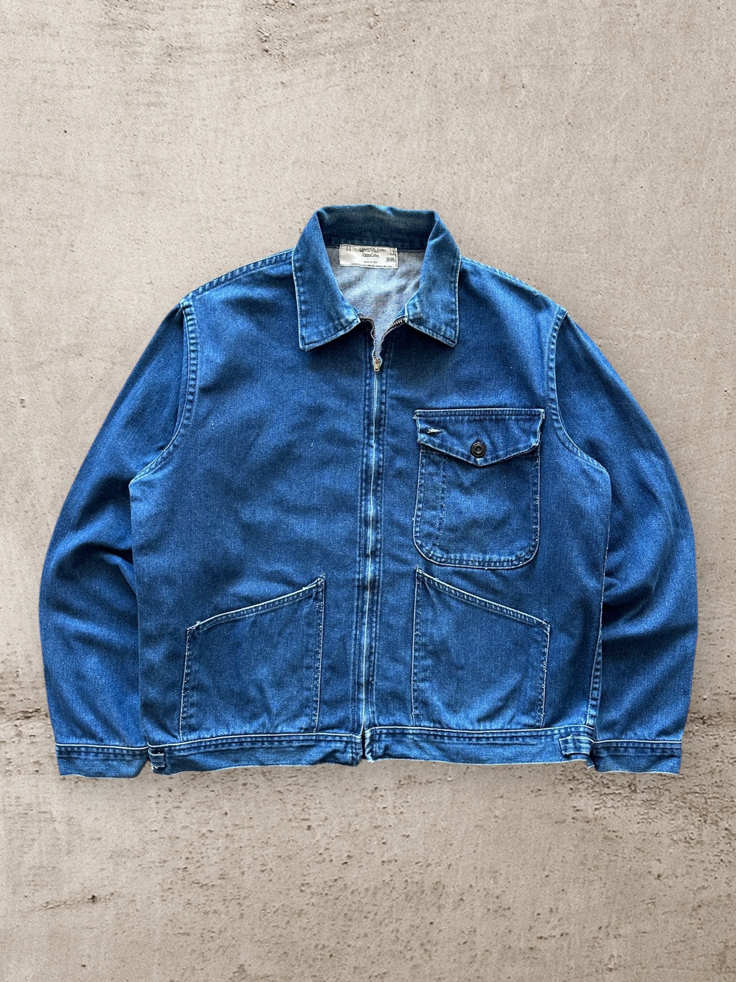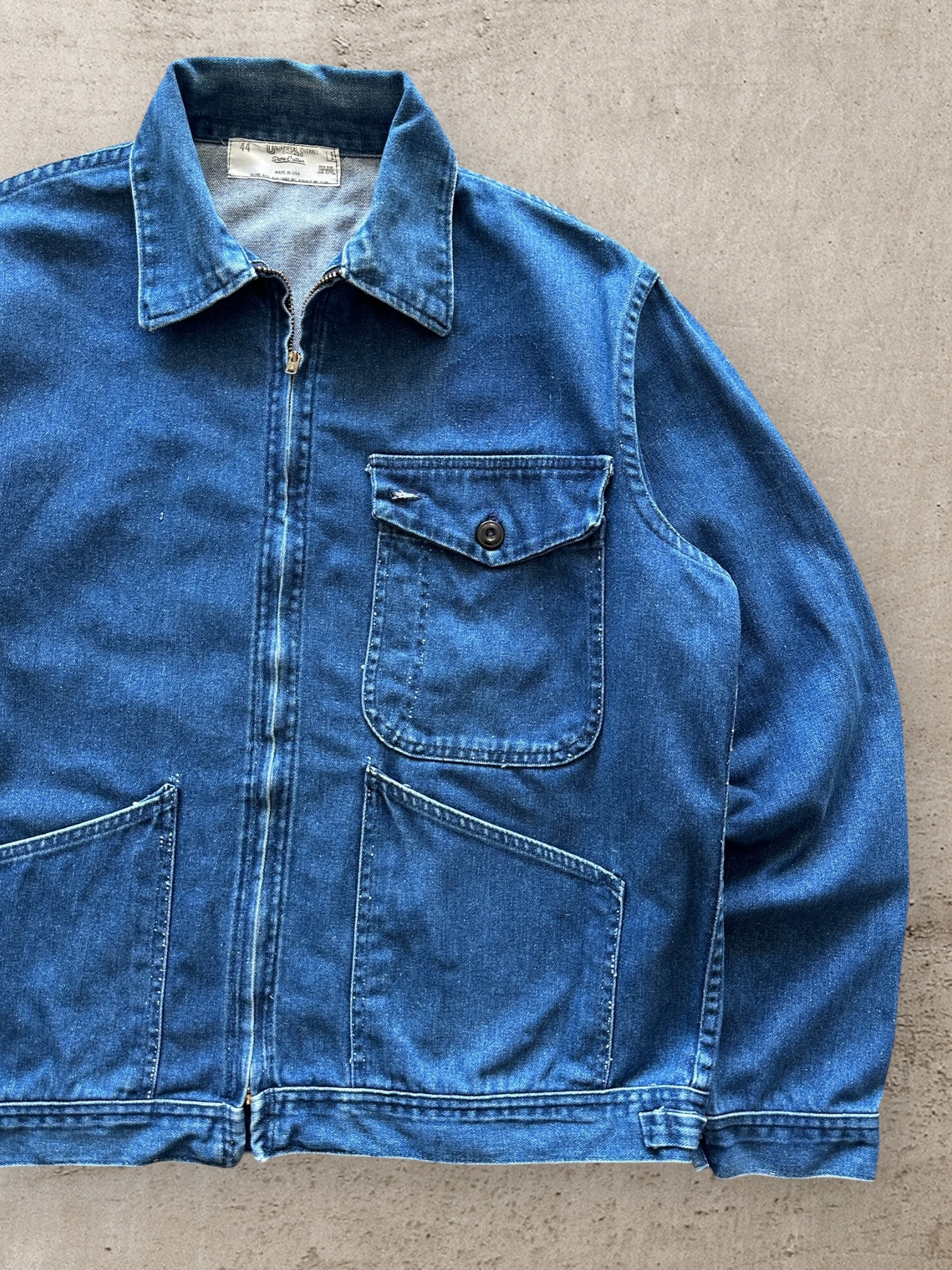 60s Stone Cutter 3 Pocket Denim Zip Up Work Jacket - Large