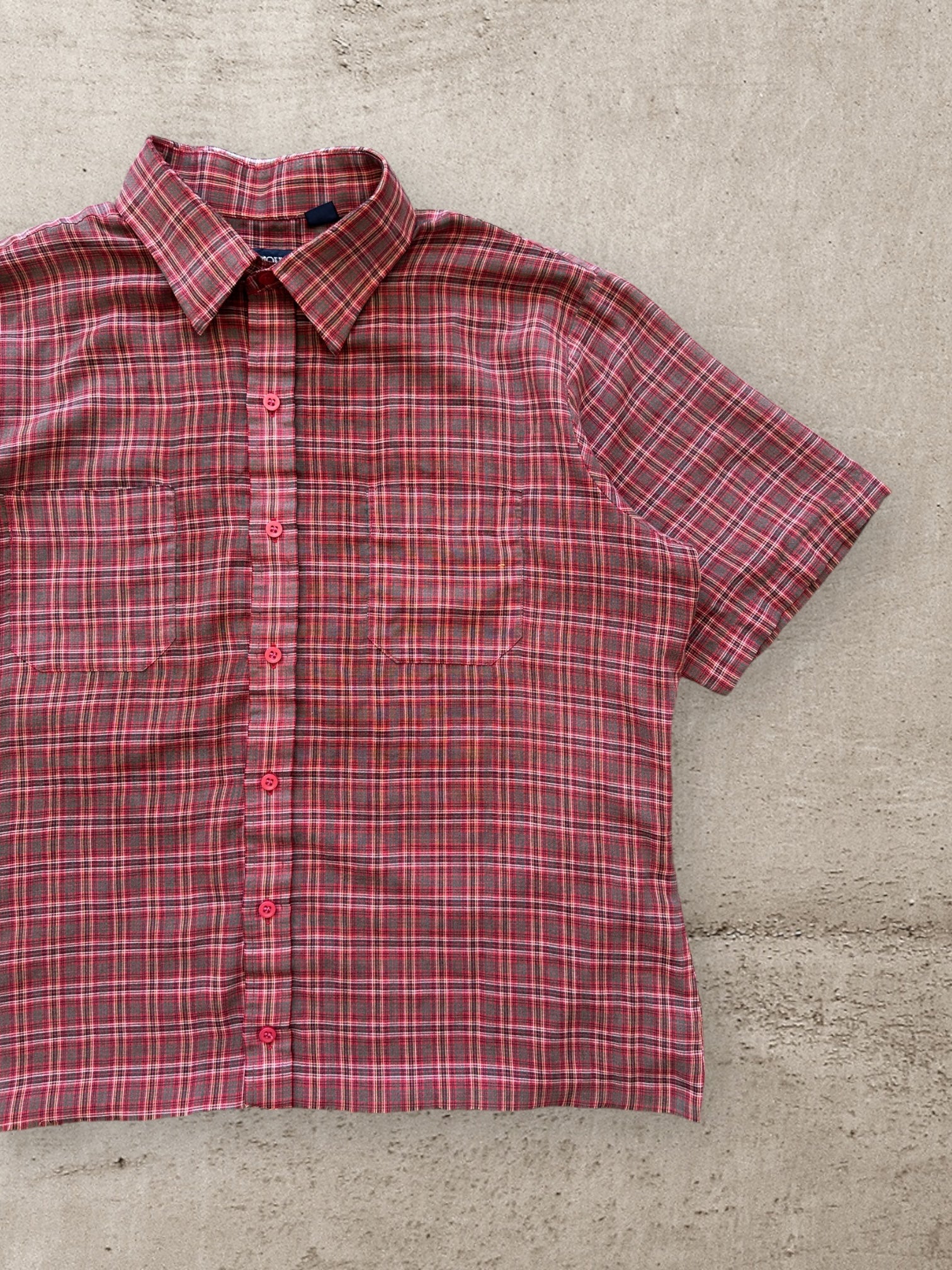 90s Arrow Plaid Cropped Button Up Shirt - Medium